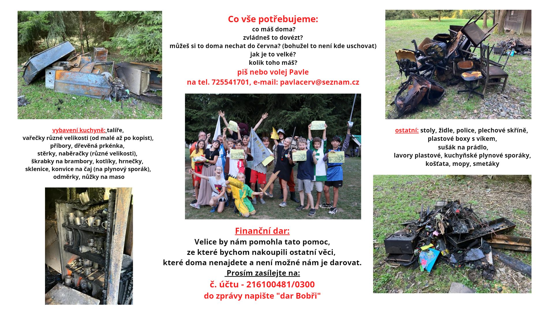 Příspěvky na další naše akce během roku se odvíjí od podmínek takové akce (její délka, ubytování, doprava, strava, akce v místě apod.). Součástí nabídky výpravy je i její plánovaná cena.